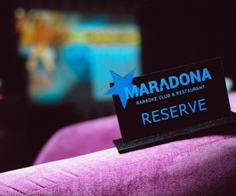 В каком месте так органично сочетаются элементы клуба, караоке бара и ресторана? Только в MARADONA (МАРАДОНА)». И не зря. Вы удивитесь нашему запасу качественных музыкальных шедевров. Если душа хочет песни, то нужно петь! За песни в караоке-клубе «MARADONA (МАРАДОНА)» не платят, а платят лишь за входной билет. Захотелось разбавить серые будни песенными хитами собственного исполнения? Тогда с воскресенья по четверг входной билет обойдётся всего лишь в 300 руб. А в пятницу и субботу во входную сумму 1 000 руб. войдут билет и депозит за стол.